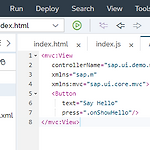 https://openui5.hana.ondemand.com/#/topic/3da5f4be63264db99f2e5b04c5e853db 2019-01-08 Step 1: Hello World! webapp 폴더 생성 후 webapp 폴더에 index.html 파일 생성 12345678910 SAPUI5 Walkthrough Hello Worldcs Step 2: Bootstrap 스크립트... 뭔지 잘 모르겠다... 123456789101112131415161718192021 SAPUI5 Walkthrough Hello WorldColored by Color Scriptercs index.js 파일 생성 /* eslint-disable no-alert 주석이 있어야함 */ 12345678sap.ui.def..